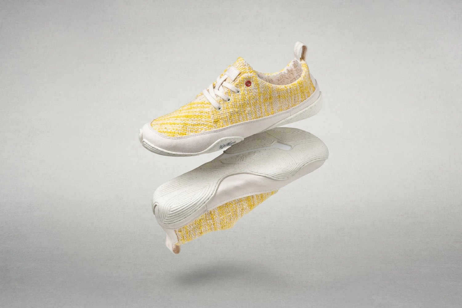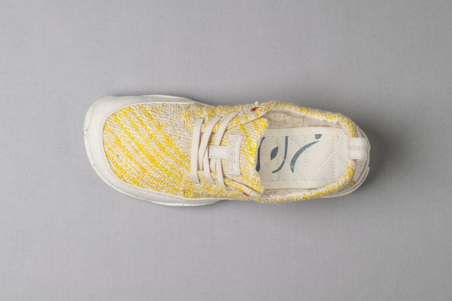 Die Baumwolle für dieses Modell stammt aus einem Cotonea-Projekt, das in Kirgistan den Anbau von Bio-Baumwolle unterstützt. Der Stoff für diesen Minimalschuh ist in Kooperation mit FOLKDAYS entwickelt worden.