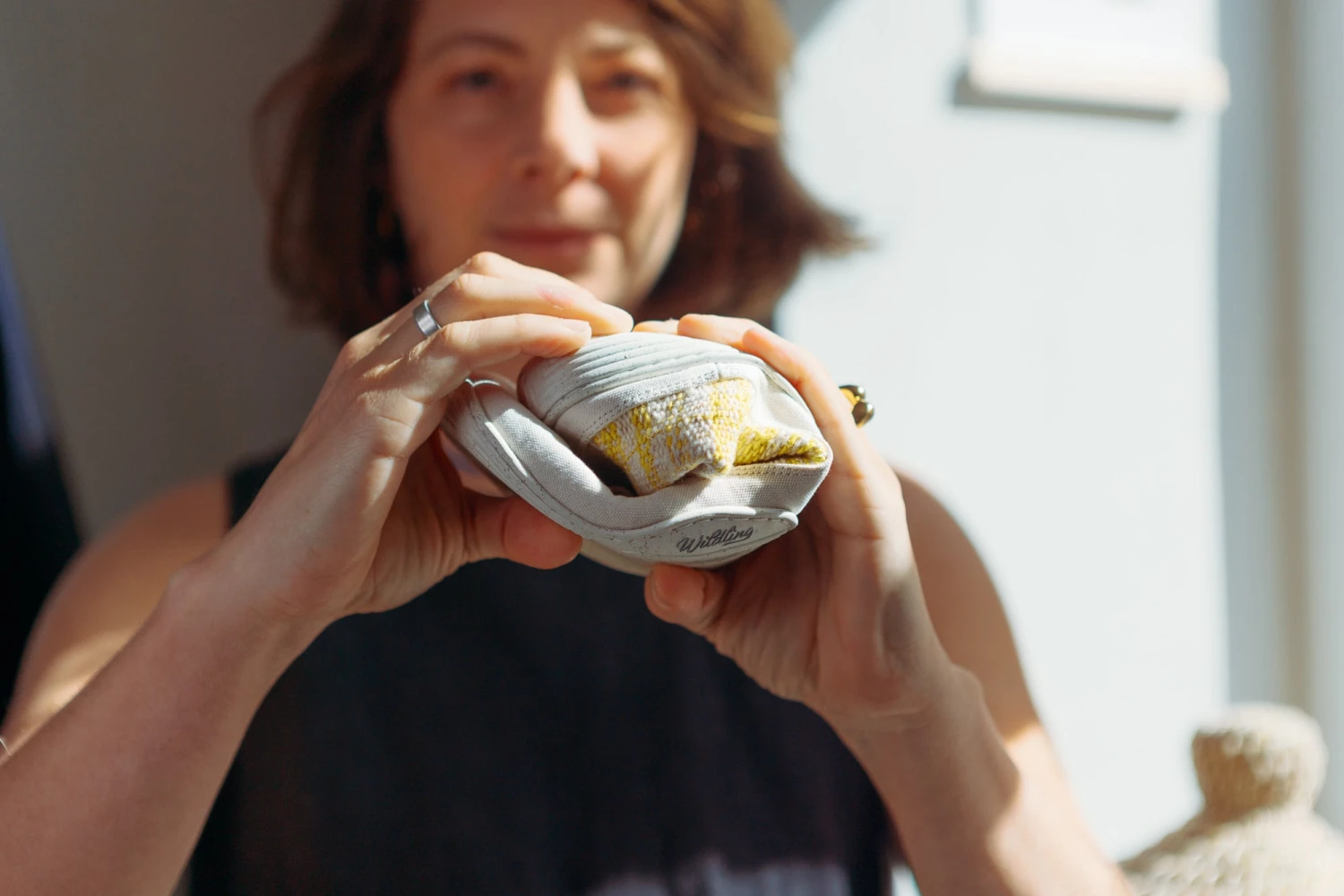 Durch das Spinnen, Färben und Weben in Handarbeit ist Struktur und Färbung jedes Schuhs einzigartig.