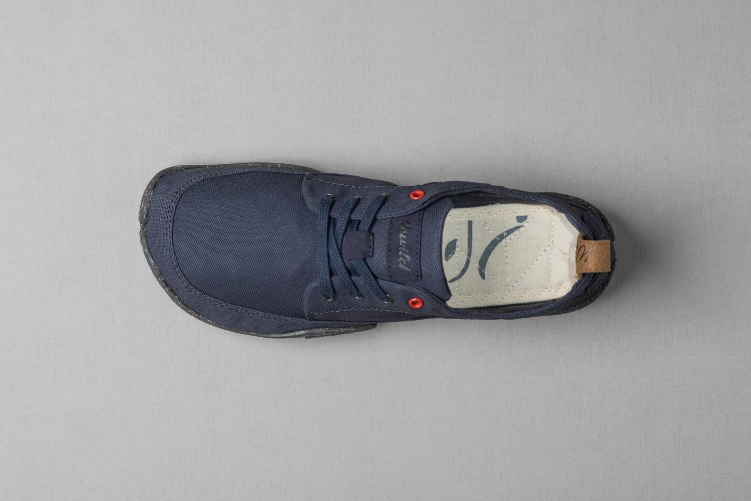 Ein federleichter Minimalschuh aus Papier. Klingt einzigartig? Ist er auch! Tanuki Umi (Meer), ein eleganter Halbschuh in Navy besteht aus Washi der japanischen Firma Itoitex, welches zu 75 % aus Papier und 25 % Polyester hergestellt wird und dadurch extrem leicht ist.