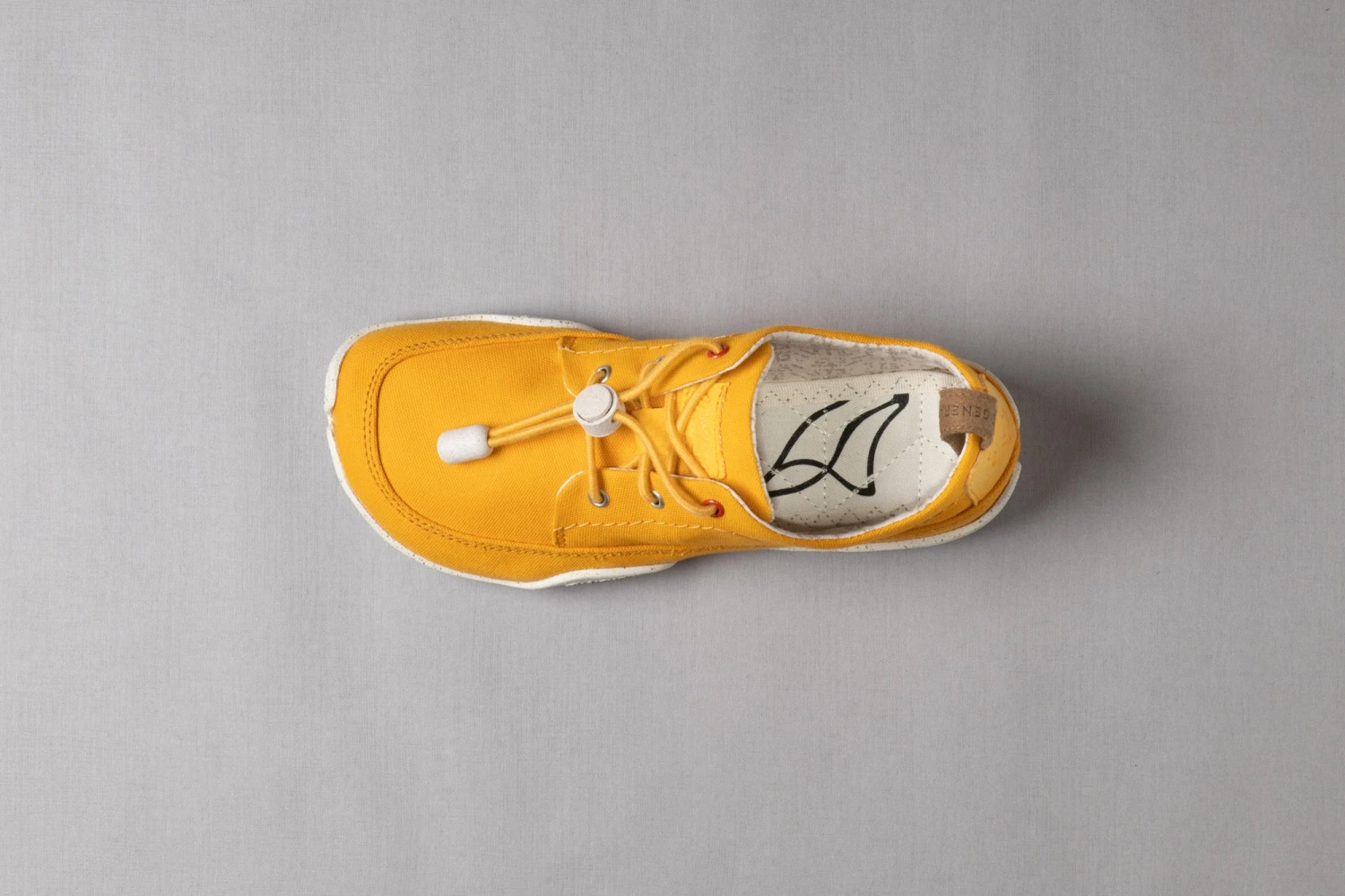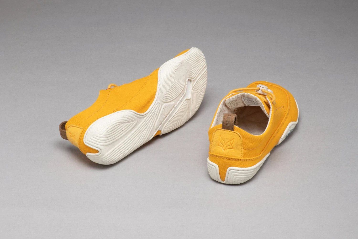 Das Obermaterial der Butterblume wird ressourcenschonend hergestellt. Der Stoff besteht zu 100 % aus recycelter Baumwolle.
