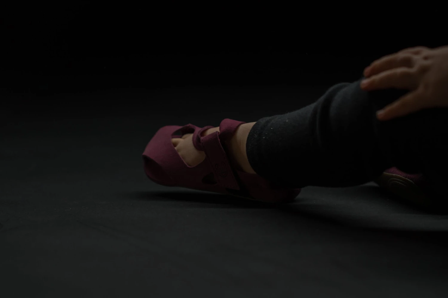 Fuß und Sandale gehen bei der Pflaumenfeder eine optimale Verbindung ein. Durch den Riemen am großen Zeh sorgt der Windlass-Mechanismus für sicheren Halt.