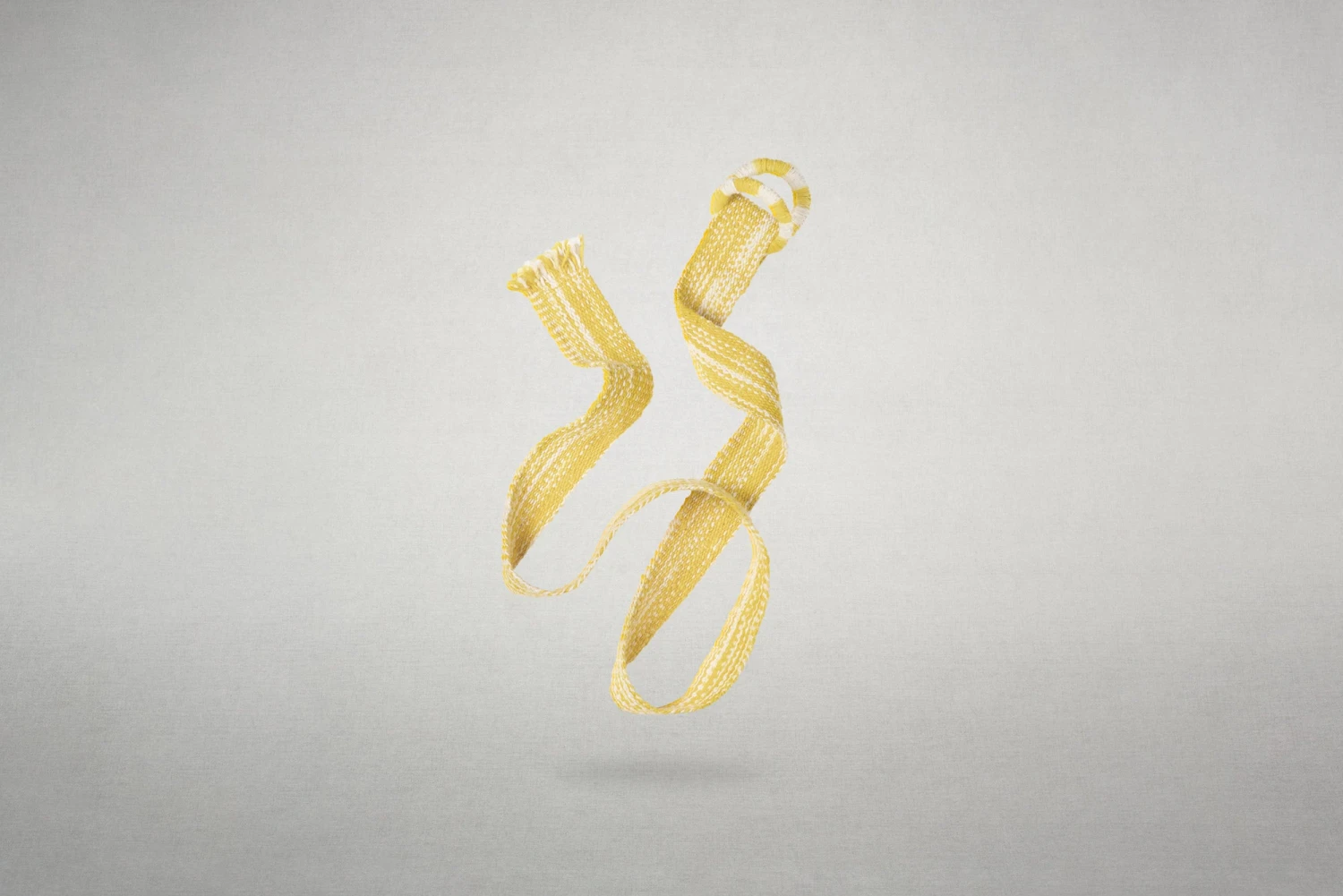 Die Baumwolle für den Gürtel wurde ganz natürlich mit Kurkuma gefärbt und mit Essig fixiert. Sein typisches Muster erhält der Ikat-Stoff durch das traditionelle Kunsthandwerk des Handwebens.
