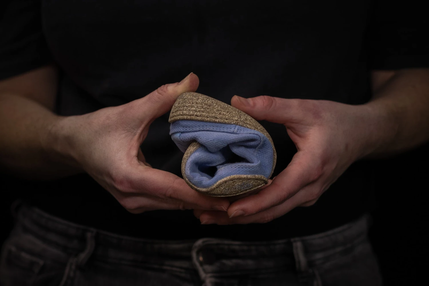 Die Materialien des himmelblauen Oberstoffes stammen aus kontrolliert biologischem Anbau. Das Leinen wird aus Europa bezogen und sorgt mit einem Anteil von 33 % zudem für ein angenehmes Fußklima.