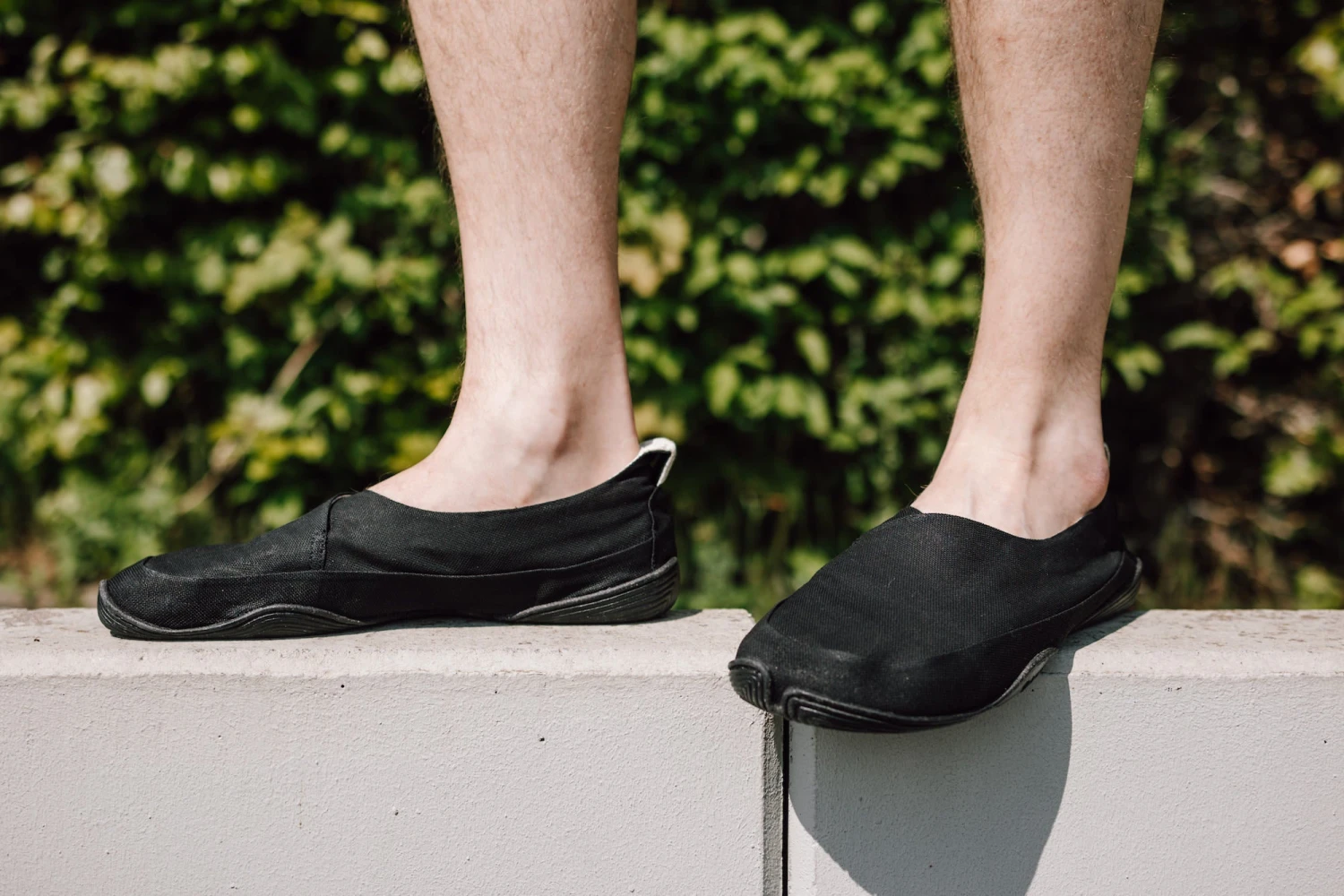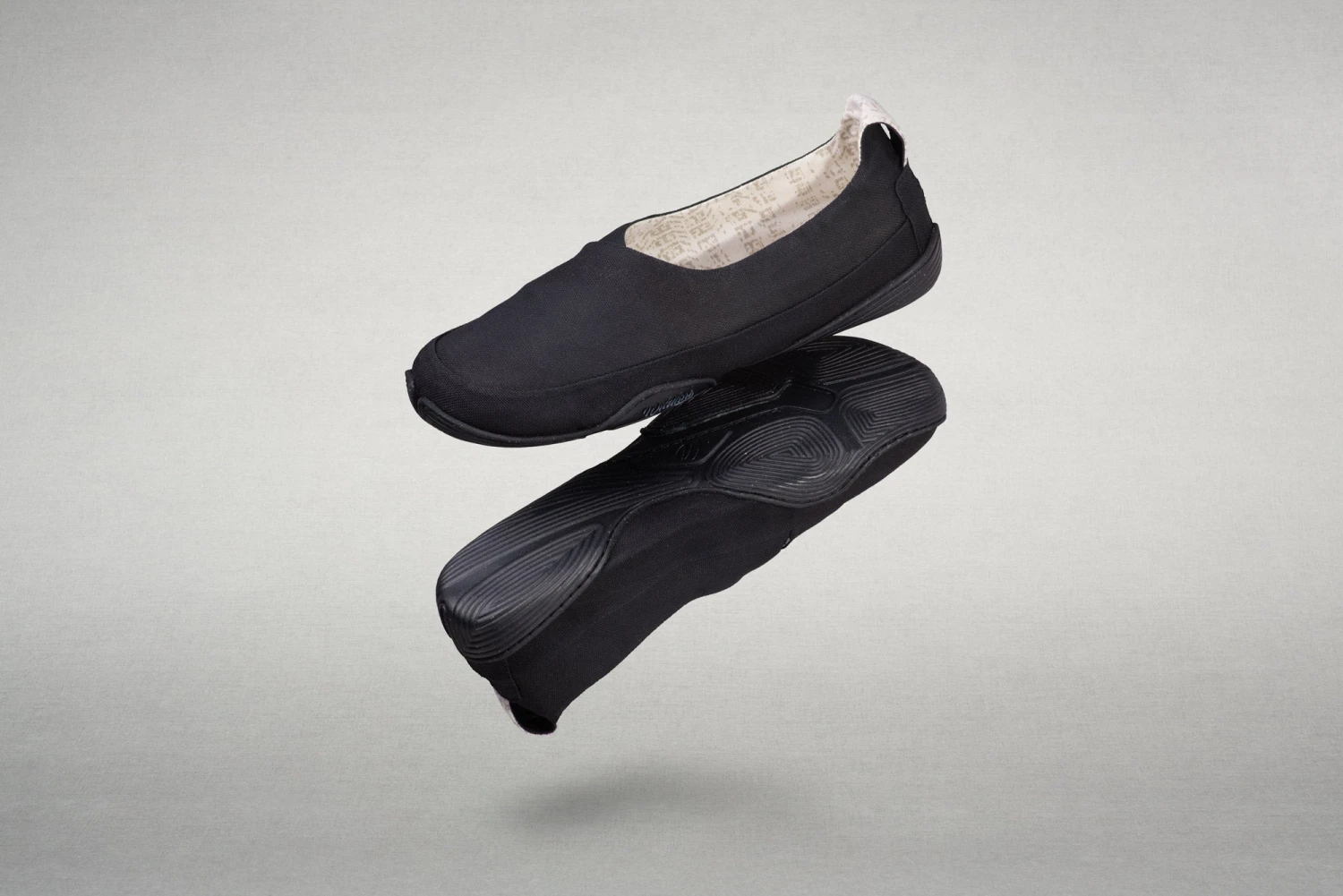 Das Design des Slip-ons ist reduziert auf das Wesentliche. Mit dem Fersenloop steigen wir ganz leicht in den Schuh. Reinschlüpfen und los geht es.