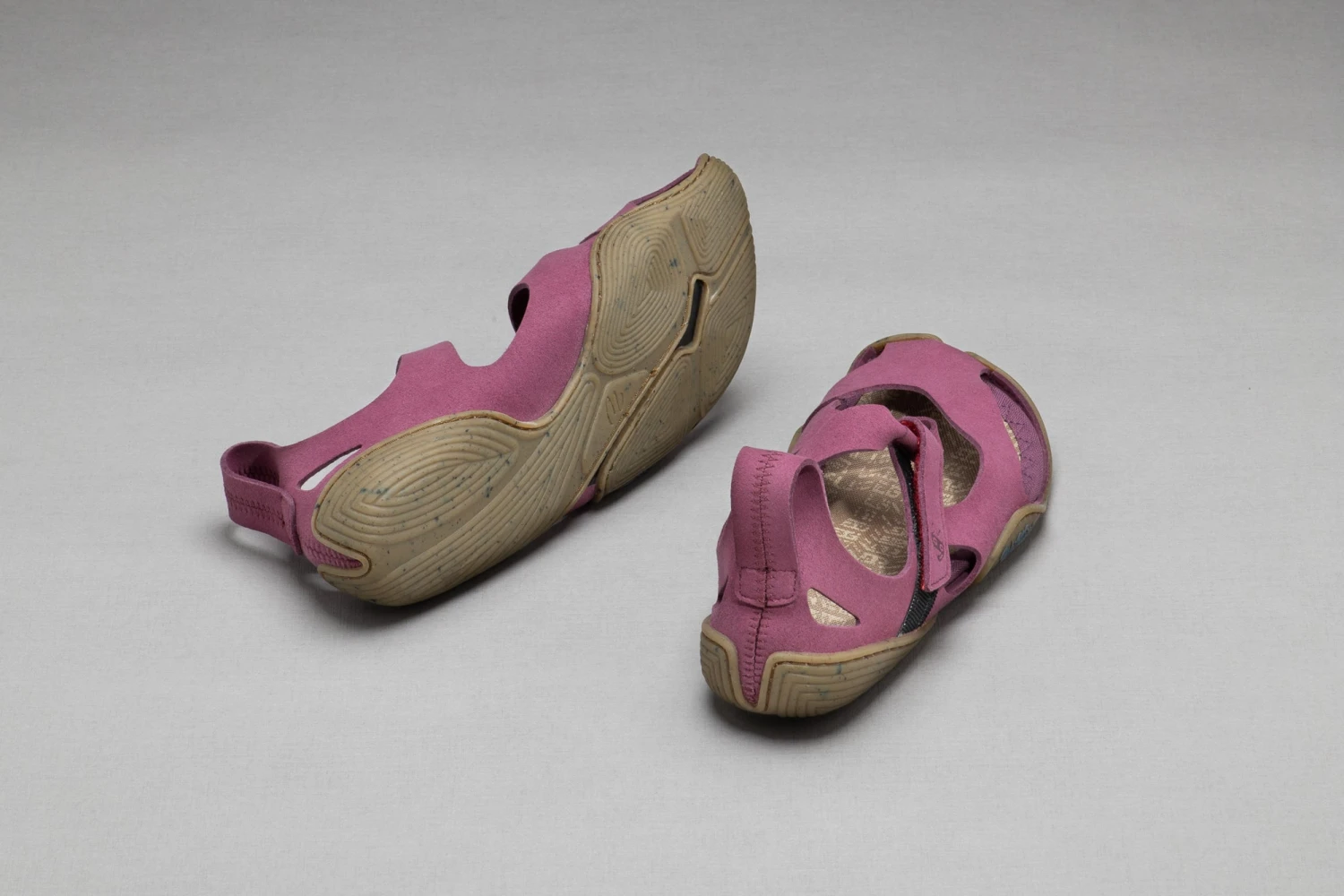 Das fuchsiafarbene Obermaterial der Pflaumenfeder besteht aus robuster Mikrofaser, die den Fuß schützt und ihm gleichzeitig so viel Bewegungsfreiheit wie möglich einräumt.