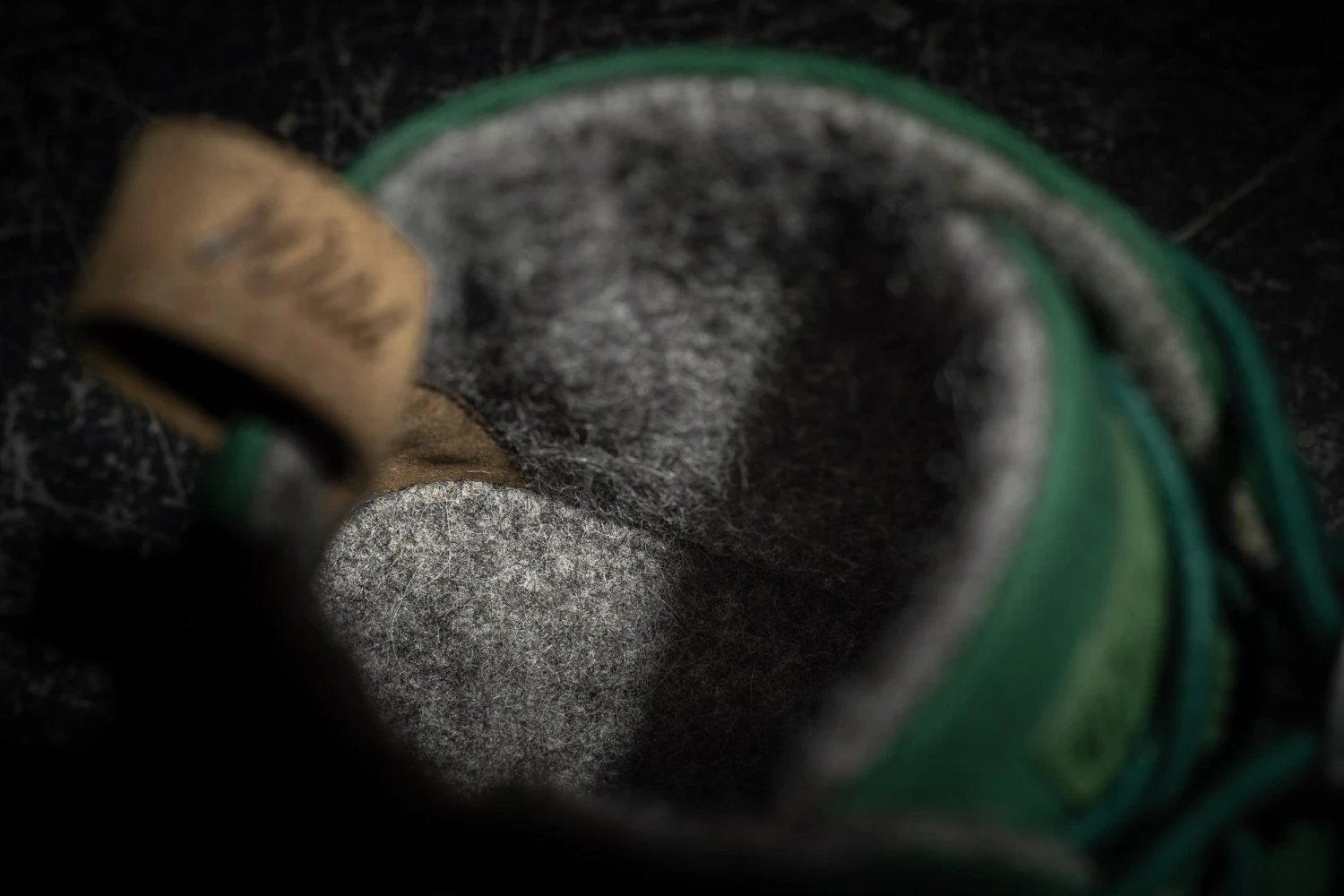 Sattgrün wie ein winterlicher Nadelwald trägt uns dieser Mid Cut durch die kälteren Jahreszeiten. Mit seinem robusten Obermaterial aus recycelter Baumwolle und dem Innenfutter aus Walkloden von unserem Partner Nordwolle sorgt er dabei für behaglich warme Füße.