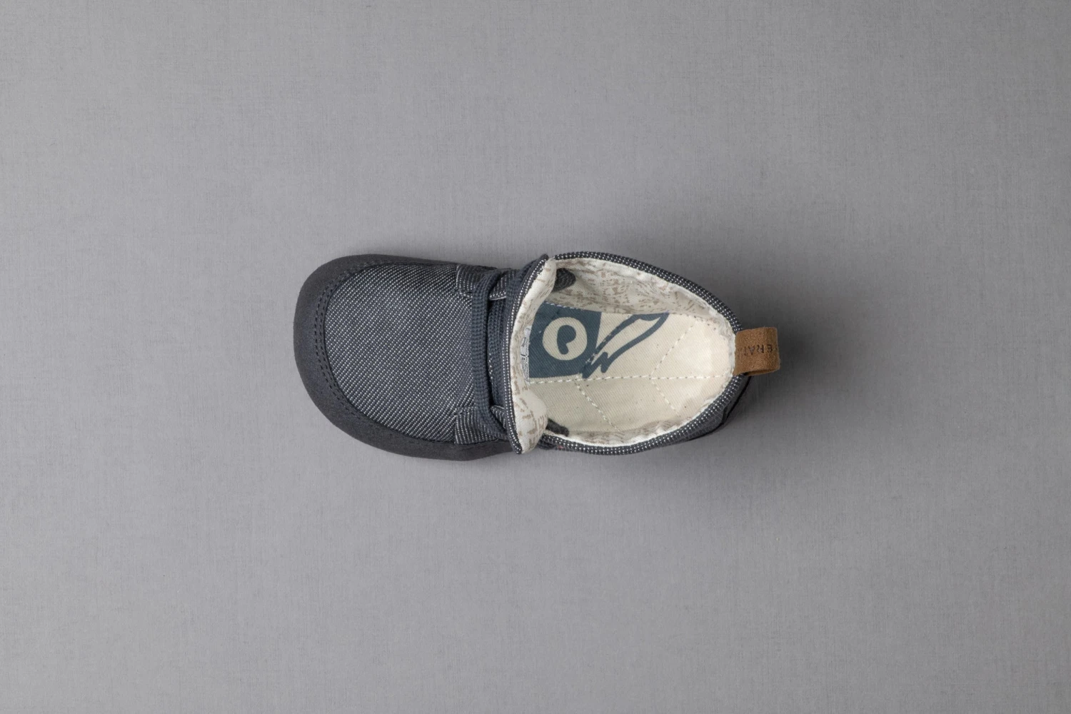 Das kohlegraue Yak in Twill-Optik ist ein robuster Begleiter, der die Füße unserer Kleinsten auf ihren ersten Abenteuern schützt.